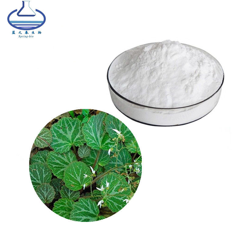 Bergenin (utilizado para la bronquitis crónica) se deriva de la familia de las saxífragas Bergenia purpurascens planta entera, col de roca de hoja gruesa (B. crassifoloa, Astilbe macroflora) Ardisia crispa raíz y tallo, hoja.Este producto son cristales blancos sueltos en forma de aguja o polvo cristalino;inodoro, sabor amargo;cambia de color cuando se expone a la luz o al calor.Es soluble en metanol y ligeramente soluble en agua o etanol.